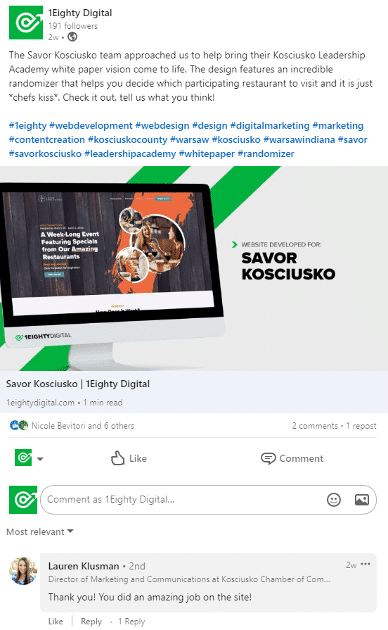 It doesn’t matter the size of your business or organization, having a consistent presence on LinkedIn will benefit you. If you aren’t sure how to get started or want someone to handle your LinkedIn social media strategy, we can help!