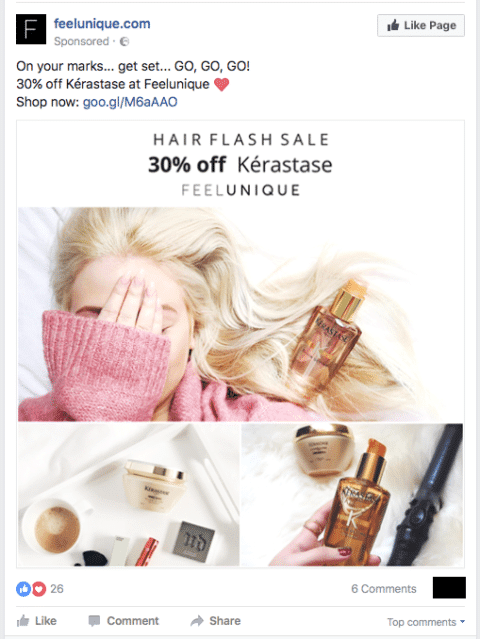This ad promotes a limited time flash sale and is designed to convert potential customers into sales. It makes it easy for customers to click and complete a purchase with a 30% off incentive.
